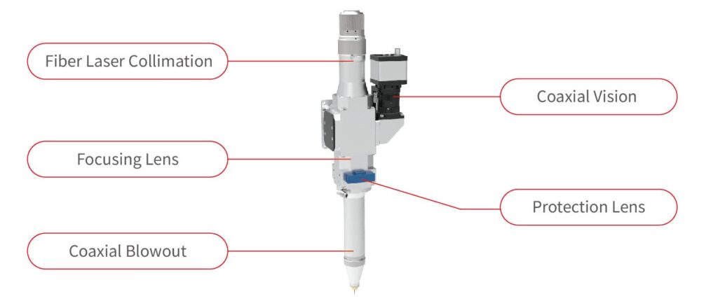 Equipped with coaxial blowout components to reduce welding fume and spatter residue contamination of the lens
